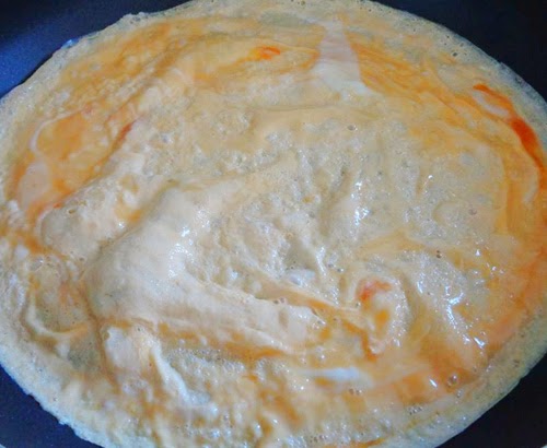 Bước 3: Đổ lớp trứng: Bạn cho trứng ra tô đánh tan cùng chút xíu nước mắm. Bắc chảo lên bếp cho vào chút xíu dầu dầu nóng cho trứng vào chiên vàng trứng chín cho ra dĩa.